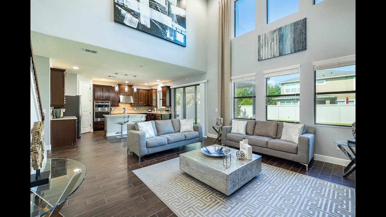 Stunning and spacious in the desirable planned community of Union Park! Five bedrooms plus office with french doors, two story, four full bathrooms in over 3000 square feet with a three car garage. This beautiful home is full of upgraded amenities. Freshly painted in December 2021 with privacy fence and no neighbor on one side – just lovely neighborhood landscaping. Porcelain tile on the ground floor with an iron rail staircase and soaring tray ceilings with upgraded lighting. The kitchen features quartz countertops, upgraded brushed nickel Delta faucet mosaic tile backsplash, GE double oven with convection, glass cooktop, French door refrigerator with water dispenser and ice maker, butler station with wine rack. Center island with teardrop lights is perfect for breakfast and adds to the entertaining space. On the second floor you’ll find four bedrooms, including the owner’s suite featuring tray ceilings. The ensuite bath in the owner’s suite features a frameless shower with bench and large soaking tub. A formal dining room with upgraded lighting and a private office are off the entry hall. Two A/C units by Del-Air with dual Nest thermostats. Samsung Dual Flex Washer and Dual Flex Dryer in the second floor laundry room. Union Park is a beautiful community just north of Tampa, convenient to shopping, dining, Interstate 75 and the University of South Florida with so much to offer including resort-style pool, clubhouse, Union Park Charter Academy, shaded Tot Lot, miles of trails, basketball courts, fitness center, lap pool and green space. Union Park offers ULTRAFi, a first-of-its-kind Internet and cable TV experience where every resident enjoys the fastest available at-home and community-wide Internet speeds in the U.S.