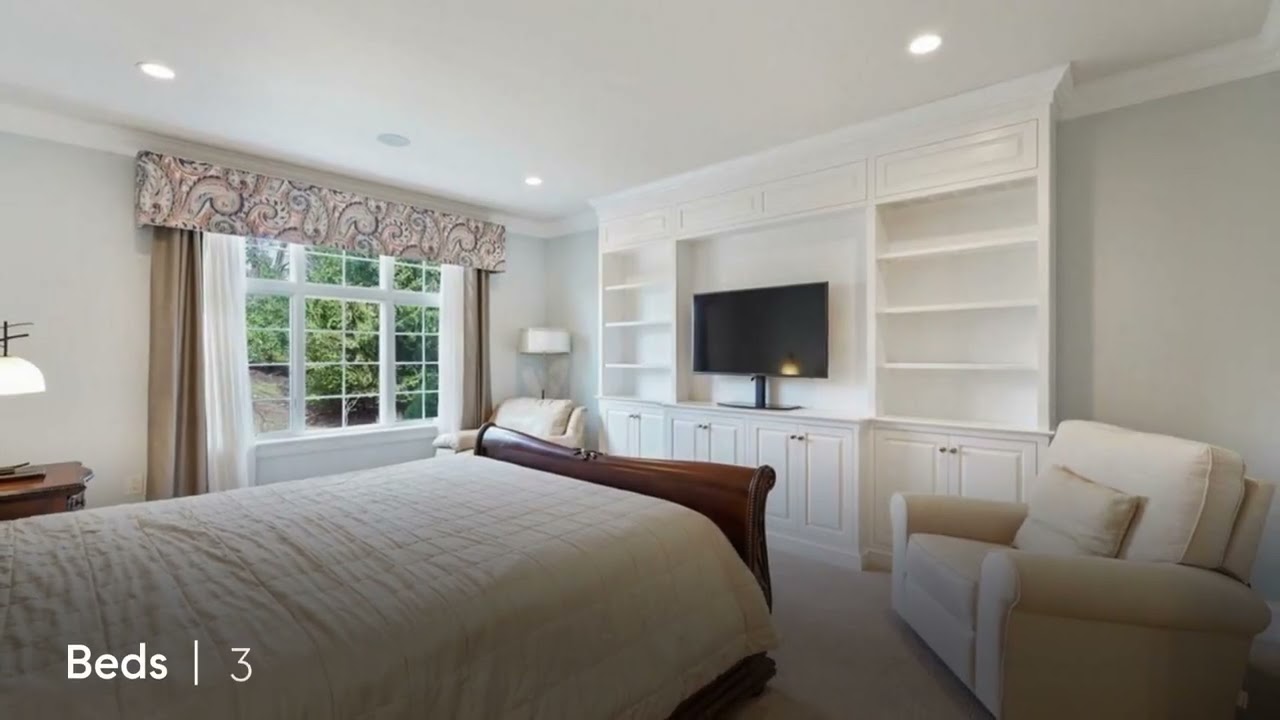 Enter via the pebble-glass-windowed front doors and you will immediately feel warmly welcomed by the natural light coming from the Palladium windows. The inviting foyer with grand, curved staircase, 9-foot ceilings, rich 4-inch hardwood floors; custom architectural millwork, Windsor arched entryways and French doors are a taste of the stately, custom features found throughout the home.