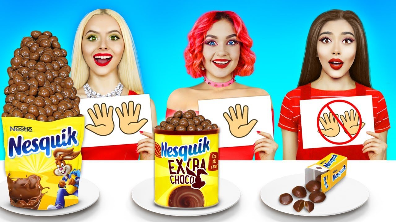 When we see our favorite sweets in front of us, it is very difficult to resist and not grab the first one that comes across in order to quickly eat it. But if the conditions of the challenge prohibit the use of hands, it will only be possible to grab with your teeth. It sounds complicated, but such rules in no hands vs one hand vs two hands challenge. Crazy hacks for drawing food without hands are already in the new video!