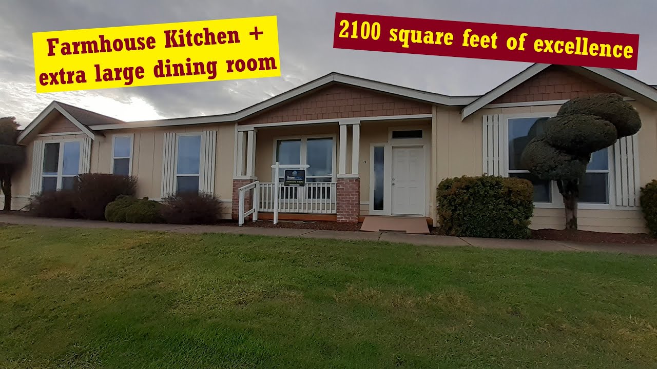Today we are looking at the Rock Creek. This 30′ x 70′, 2100 sq ft home, can be found at Homes Direct in Albany, Oregon. This home has 3 bedrooms and 2 bathrooms. A large family room and living room. You get a dining room big enough for 2 tables. A kitchen that resembles a farmhouse style kitchen. The master bath is extra large and had both tub and tile shower.