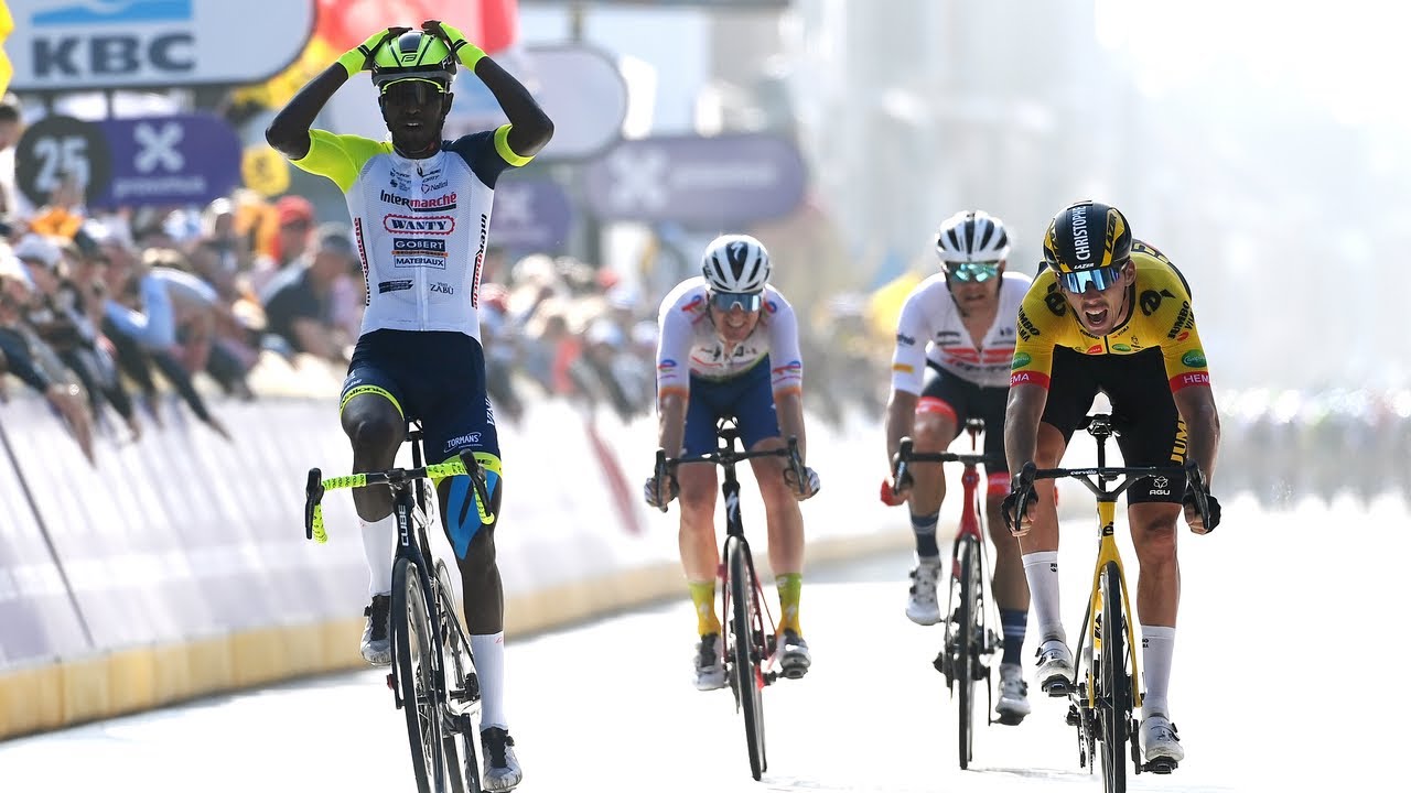 Intermarché – Wanty – Gobert Matériaux’s Binam Girmay from Eritrea wins the 2022 Gent-Wevelgem men’s elite race to become the first African winner of the race!