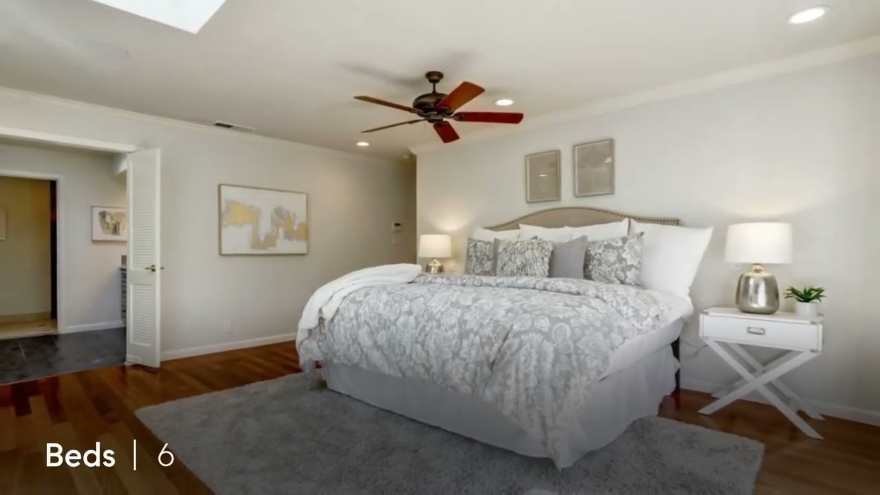 Exceptional and meticulously cared for single level estate in an equally exceptional neighborhood. This magnificent home in a serene and private setting is the perfect sanctuary and retreat with six bedrooms plus an office w/closet. A perfect balance of formal and casual design with French doors throughout leading to an entertainment ready professionally landscaped backyard with several outdoor private sitting areas, a beautiful courtyard and complete outdoor kitchen with heaters, pool, Koi pond, waterfall, fountain and gas fire pit. Primary Suite with Spa like bathroom. Second Primary suite with large walk-in closet and French doors. Gourmet Kitchen with custom island with a six burner chef grade stove and walk-in pantry. Pre-wired Audio/Video/Data control room to create home theater. Large mud room, skylights as well as recessed lighting throughout. Upgraded Electrical Panel to accommodate Electrical vehicle. A perfect space for your guests or multi-generational family.