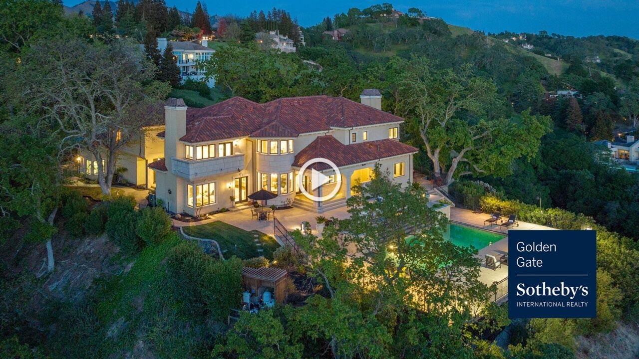 Piece-De-Resistance of Roundhill Estates North with 180-degree views! This exclusive estate located in Roundhill Country Club behind a private gate sits on 2.77 acres with breathtaking views. This truly exceptional home features five en-suite bedrooms, six and a half bathrooms, a library, huge media room, sparkling pool with cascading waterfall and spa, a built-in fire pit, and a lighted sports court. The beauty is in the details and finishes throughout from grand entry with soaring ceilings to elegant formal rooms, custom painted boxed beam ceilings, lovely dining room with spectacular picture window, quarter-sawn oak hardwood floors, gourmet kitchen, large gathering spaces, perfect for entertaining. French doors from almost every room opens to the amazing grounds, limestone patios, meandering walkways, courtyard garden shaded by magnificent oak trees. Spectacular views from the expansive poolside terrace ultimate location to capture a beautiful sunset. Close to Roundhill Golf and country club, Highway 680, Walnut Creek BART, downtown Alamo/Danville, and top-rated schools.