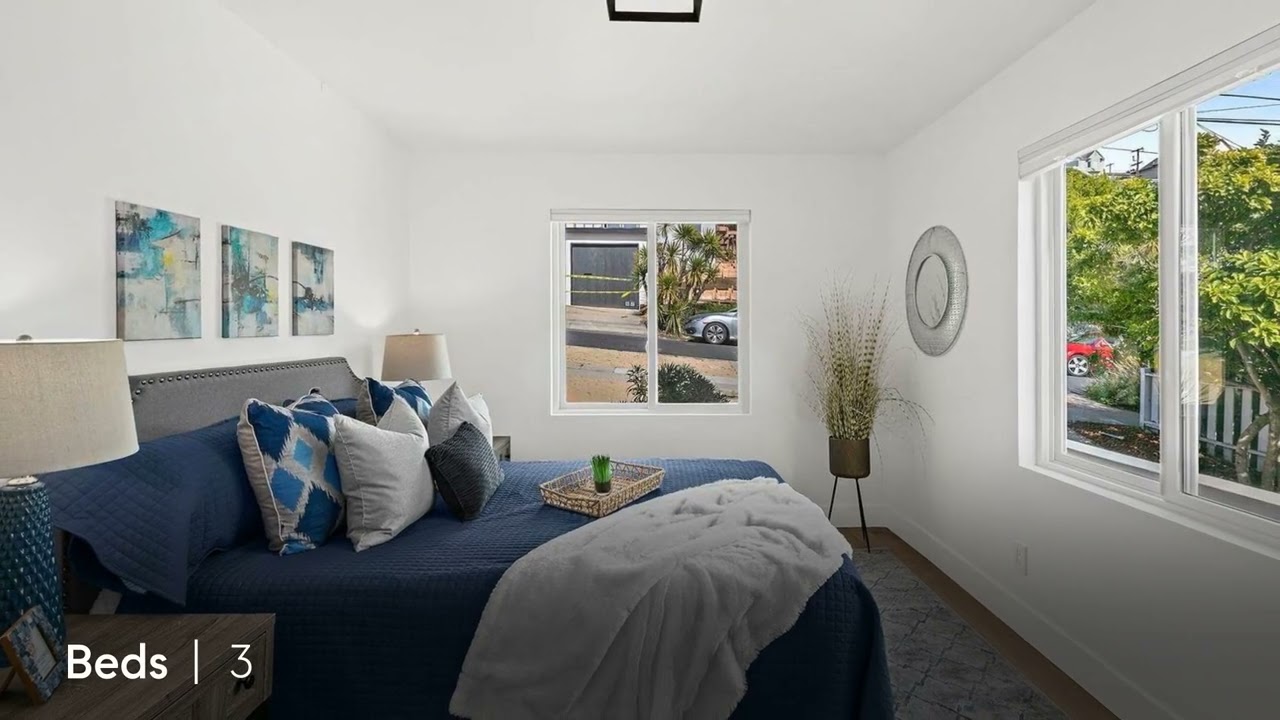 Spectacular views!! Sweeping views showcase San Francisco, Golden Gate Bridge, Mount Tam and the Bay! Tastefully remodeled from top to bottom. Main level entry opens to expansive living area with large picture windows. French doors lead to deck with stunning views. Open dining area with scenic views. Light filled gourmet kitchen with custom white cabinetry, quartz counters, stainless steel appliances and custom back splash and views from the kitchen sink. Two bedrooms on the entry level floor with remodeled bathroom. Primary suite located downstairs with large closet, elegant primary bathroom, custom tile walk in shower and dual sinks.