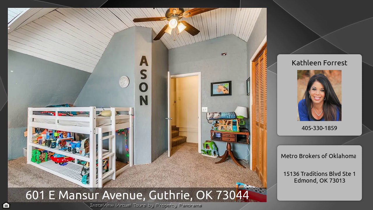The Virtual Tour for the property at 601 E Mansur Avenue, Guthrie, OK 73044 listed for $149,700: Other homes for sale by Kathleen Forrest of Metro Brokers of Oklahoma: Character and charm that originated in 1901! Your new home is priced below comps and was renovated in 2012! Original wood flooring (it is beautiful!), wood-framed windows and a brick fireplace will catch your attention. French doors lead into the formal dining room where a 10-person table, hutch, and buffet will easily fit. Continue to the kitchen where you will see granite counters, a 6-foot island, Bosch stainless appliances, …