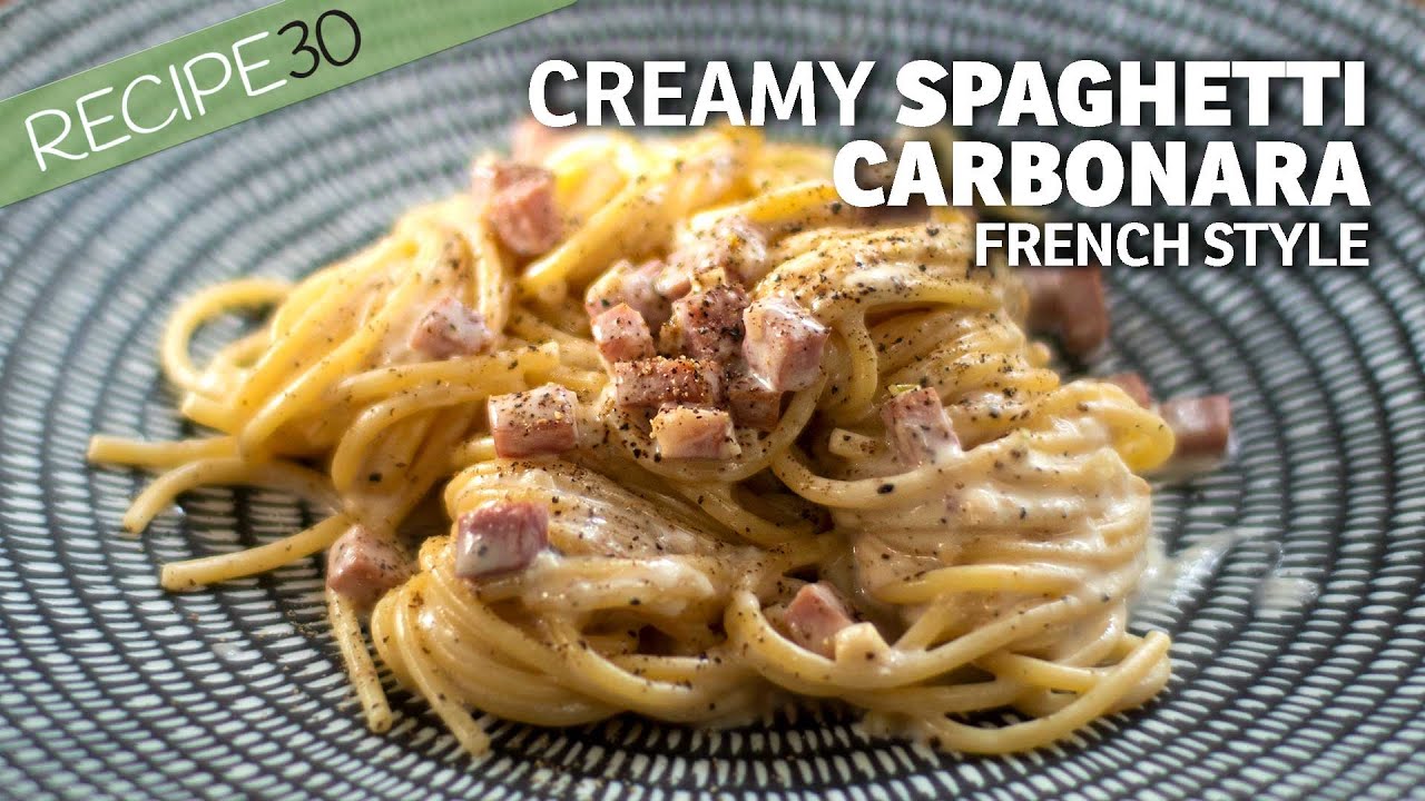 This spaghetti Carbonara recipe is far from the authentic Italian one, and it’s not meant to be.  Cream is never to be seen anywhere near an Italian carbonara and I totally respect that.