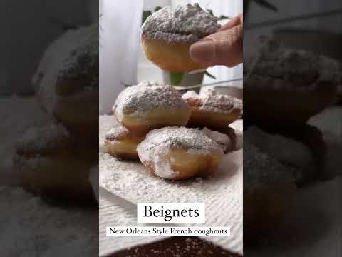 Light and fluffy mini square shaped New Orleans Style French doughnuts. For the recipe: beignetsCookingDOUGHNUTdoughnutsfoodieFranceFrenchFrench recipesNOLARecipestyleVideoVlogYouTube