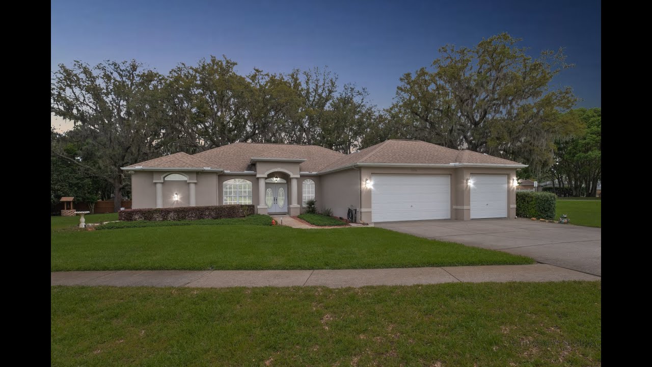 1066 Rudolph Ct Spring Hill FL 34609 – This captivating 4 bedroom 3 bathroom home on a wonderfully sized corner lot will not last on the market long! Located in Huntington Woods a non HOA neighborhood. This huge lot has so much to offer. The home sits on .57 of an acre. From the moment you approach the home you will see the striking size and plenty of parking. Inside you will find a tiled living room and formal dining room. The dining room overlooks the front yard and the living room has a tray ceiling and hosts French doors into the screened in patio. The kitchen has a pantry, space for a coffee bar and plenty of cabinet space! You can enjoy a meal at the breakfast bar or take a seat in the spacious breakfast nook with windows that overlook the backyard. The spacious primary ensuite hosts French door to the backyard. The attached bathroom has a linen closet, dual vanity and a spacious walk in tiled shower. Want to have a movie night? Take a seat in the family room! The family room has French doors that lead to the patio of the large spacious backyard. Down the hallway behind the kitchen you will find 3 other bedrooms and the second bathroom. The guest bathroom has a shower/tub combo. All the bedrooms are spacious and well lit! The laundry room is off the garage and has extra cabinets for storage as well as a laundry sink. In the garage you will find space for 3 cars and the 3rd full bathroom. Step out in the tiled screened in patio and enjoy relaxing in the shade or step onto the patio and enjoy the wildlife the neighborhood brings. The yard has a fenced in section as well as lots of space outside the fence! This home has so much to offer! Make your appointment today before its too late!
