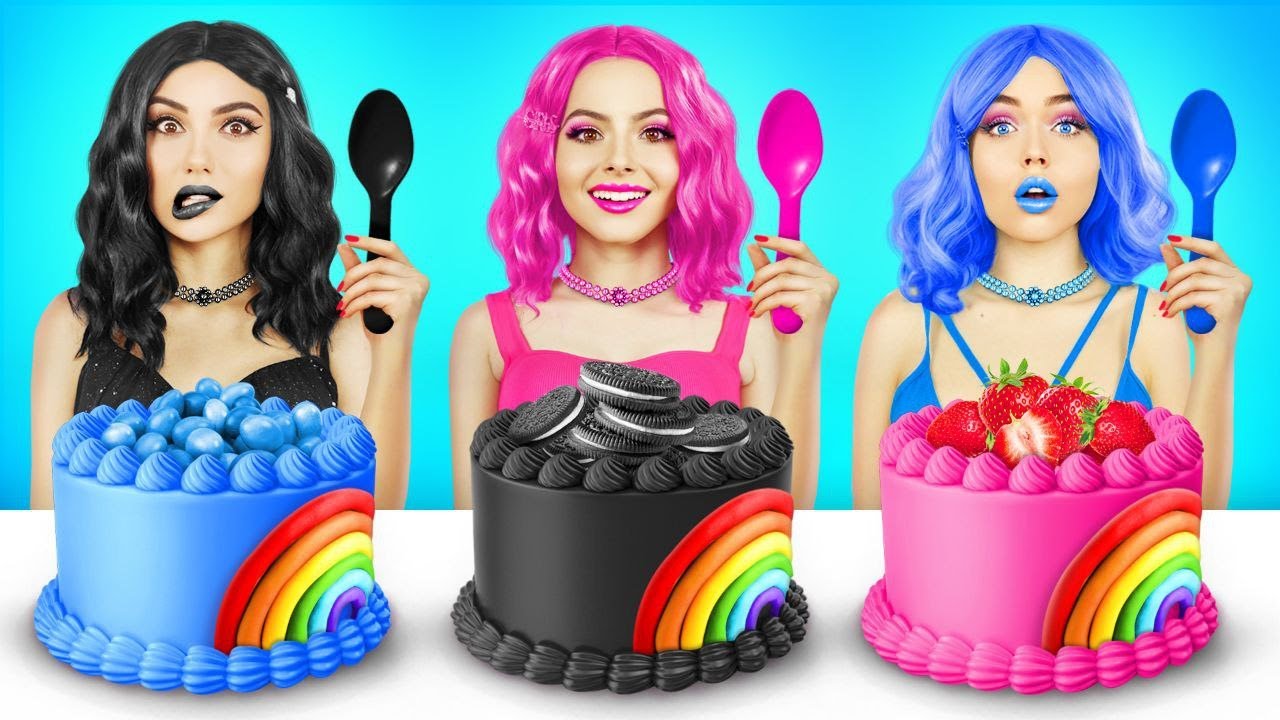 Satisfying hunger is not an easy task, but you can still complicate your task if you participate in the only one color food challenge. Today we have a choice of black vs pink vs blue food and choosing only one color does not even look at the others. Do you have the courage and endurance to win this challenge? See how our participants do it!