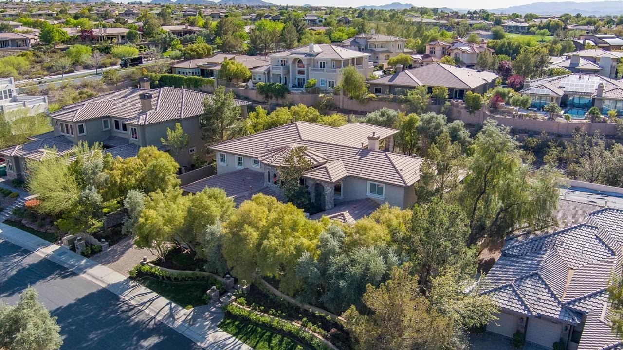 See the Property Website! :: Michele Sullivan – 702.860.8995 :: Step inside this luxurious custom French chateau. Entry foyer features formal living and dining area. Newly remodeled chef’s kitchen including a butler’s pantry, breakfast nook and bar, with a wine room right alongside. Travertine floors and stonework throughout the entire home. Primary bedroom downstairs features dual French doors leading to courtyard and backyard entertaining. Beautiful spiral wrought iron staircase leads you to additional all en suite bedrooms. Media room features a built in bar and out door patio area for entertainment. Walk out to your patio and be welcomed by the gorgeous view of your ultra private backyard with a fire pit, pool and spa. Offered fully furnished with all restoration hardware.