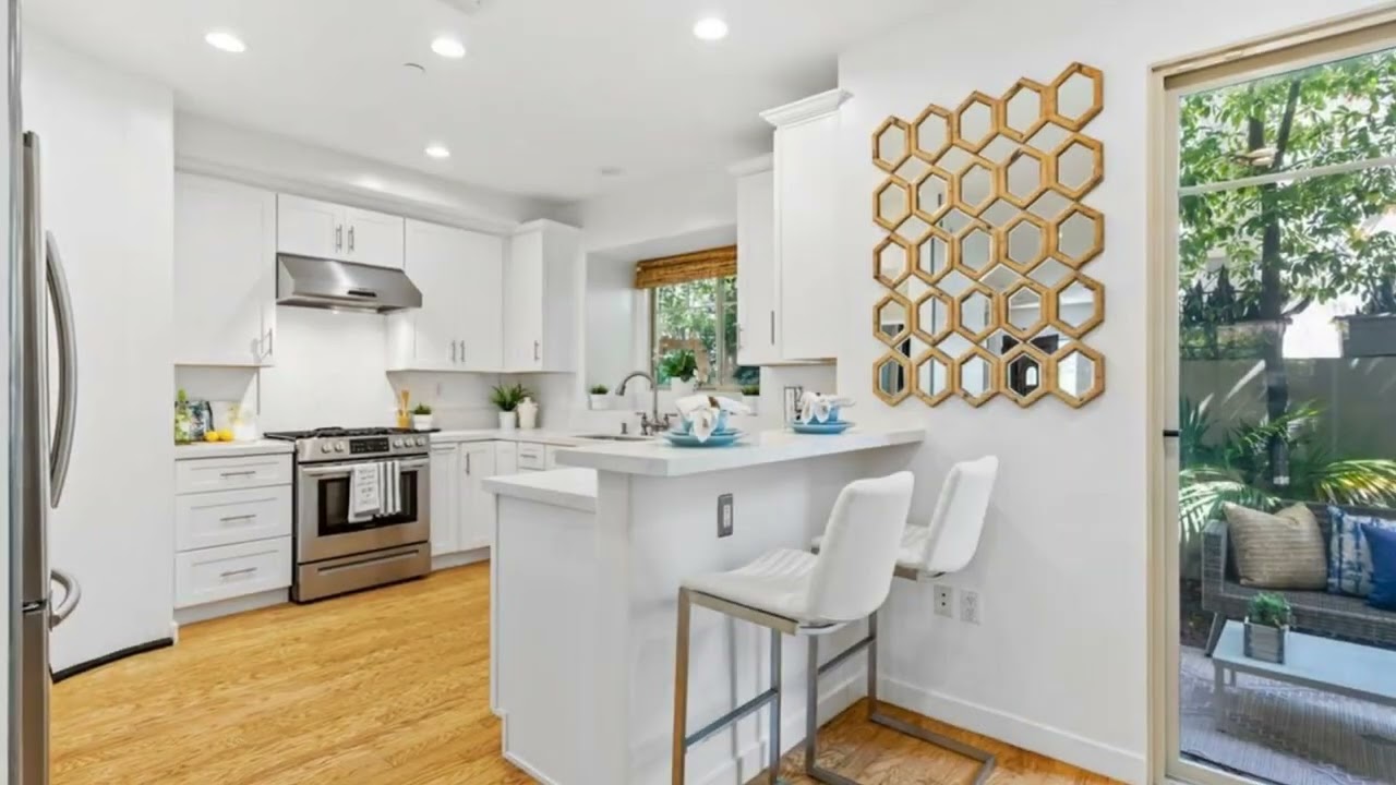 Chic Mediterranean townhome in a pristine complex North of Wilshire. High ceilings, crown moldings and hardwood floors. 2 bedrooms and 2 .5 baths with a large loft perfect for an office or sitting area. Rooftop deck with Ocean views. Direct access to a private 2 car garage. Principal bedroom has a walk-in closet, spa bath and extra high ceilings.Gourmet kitchen with stainless appliances, quartz countertops and custom cabinetry. Open floor plan with French doors leading to your own private garden patio perfect for entertaining or Al Fresco dining. Close to schools, trendy restaurants, farmers markets and just 10 blocks to the beach. Enjoy the ease and convenience of this exceptional home and location.