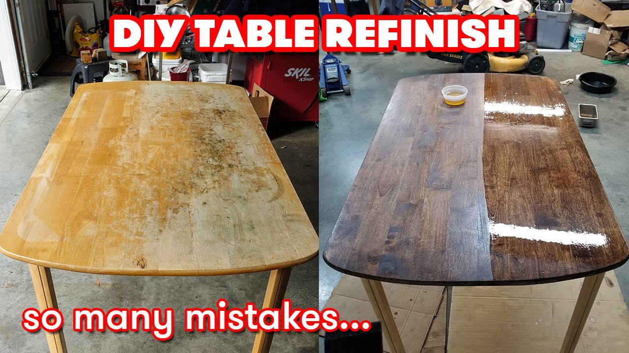 Hey guys, here’s a DIY look at how to refinish an old table. A lot of it is prep work, so sanding and fixing it up but then I stained the top a dark “sedona red” and spray painted the legs matte white. That’s all there is to it.