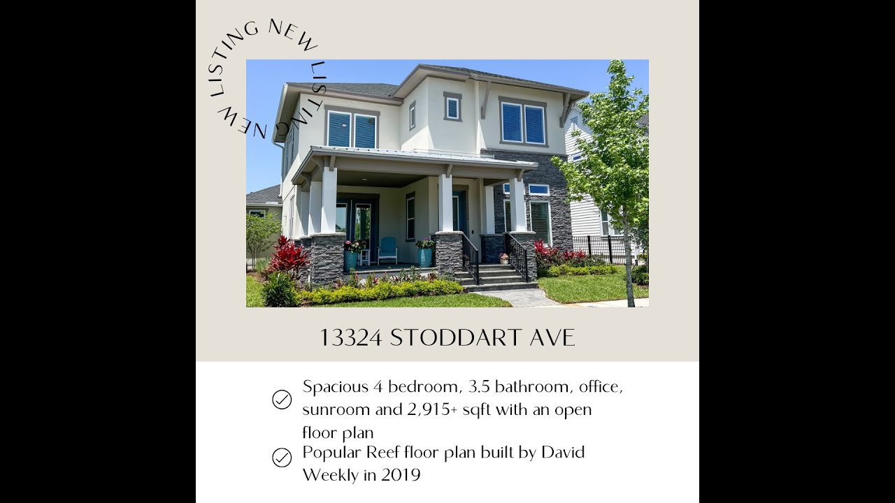 This is it! Upgraded, very popular David Weekley REEF floor plan, Situated on Stoddart Ave in the Highly Desirable Laureate Park Lake Nona Community. As you walk up you’ll find beautiful landscaping with stunning Curb Appeal. Enjoy relaxing on your Spacious, covered, and fully pavered Front Porch. As you enter you are greeted with exquisite Mohawk Laminate Floors, crown molding, high ceilings, and TONS of natural light! Just after your foyer you will find an office/den with Glass French Doors, Large Windows, and a spacious closet which offers great storage space under the stairs. Next you will be amazed by the open Dining, Kitchen, and Family Room Combo that is perfect for entertaining. The Dining Area is just off the kitchen space and includes built in cabinets, built in wine refrigerator, buffet bar and is completed with Glass French Doors leading onto your covered front porch. The well appointed kitchen is like a chefs paradise. Light Gray Shaker Style Cabinets, a Gourmet Kitchen, Pot and Pan Drawers, GE Profile Stainless Steel Appliances, Trash Can Pull Out, Cushion Close Drawers, Closet Pantry, stylish backsplash, and large fabulous granite island complete the kitchen. Just off your Kitchen is your Spacious Great Room with an Amazing array of Natural Light, high ceilings, speaker system complete with sub woofer and sound bar and Beautiful Stain Grade Spanish Oak Cypress Beams. Situated adjacently you will find a Sun Room which works great as a sitting area, Play Space, or an extra Extension of your Family Room. Tucked away in the rear of your home is a spacious Walk In Laundry Room with cabinets, built in sink, and Direct Access to your Master Bathroom. The Master Bathroom is Bright, Offers Double sinks, Granite Countertops, Dark Hardware, and Vanity Lights. Your Stunning Supershower is Complete with a Modern Light herringbone Design, Tile laid Floor to Ceiling, and is complete with a shower seat. Your Master Bathroom is complete with a Spacious Master Closet. Your Master Bedroom offers High Ceilings and Great Privacy from the rest of the home. As you head up the stairs you will notice stunning upgraded wrought iron spindles. Just off the stair landing is a Bedroom with an ensuite including granite countertops and a tub/shower combo. Two more bedrooms along with another Full Bathroom and an Oversized Loft Space complete the upstairs of the home. Enjoy Florida living on your back covered lanai featuring beautiful pavers. The oversized 3 Car garage offers plenty of space for storage, your vehicles including standard size trucks, and enjoy the benefits of a usable driveway which is nice to have in this community. Your HOA Includes Basic Cable, HIGH-SPEED INTERNET of up to 1GIG, FOB entry to LP Fitness Center, Resort-Style LP Aquatic Center with Beach Volleyball Court and a half Basketball Court. Laureate Park also offers Community Gardens, Dog Parks, Playgrounds and Miles of Trails to enjoy Walking, Running and Biking. Enjoy Community Activities like Movies in the Park, Yoga and more. Located in the heart of Lake Nona Medical City with BEEP autonomous shuttle service. A RATED SCHOOLS and Minutes to Orlando International Airport, Major Highways, Shopping, Dining, USTA and KPMG.