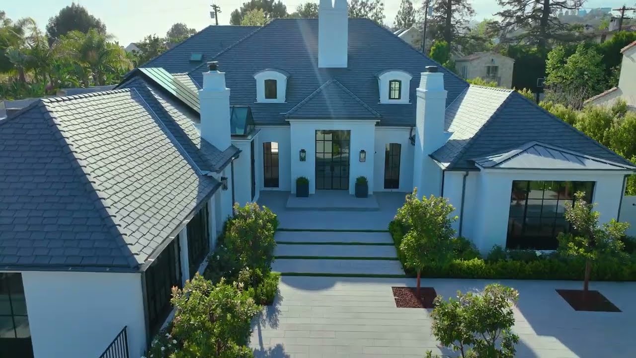 The black steel framed floor to ceiling windows and doors along with the striking glass pitched ceiling above the gourmet kitchen allow for maximum natural light throughout the house. Rich textures like French oak, brass, and soft white walls accent the home. The exterior grounds are equally captivating, featuring lush green landscape and a picturesque resort style pool. This property offers its owners the utmost privacy along with excellent space for entertaining for both intimate gatherings or grand scale events.