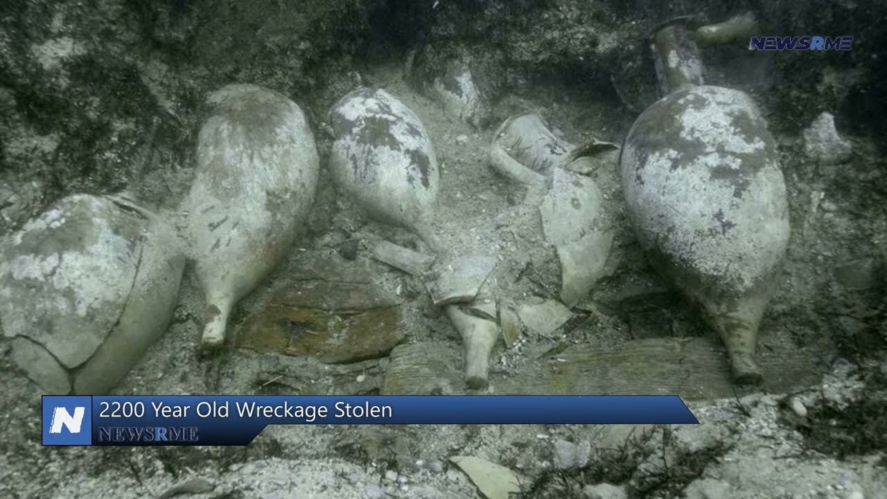 Amphorae, or clay pots used for transporting wine at the period the shipwreck was discovered in 2017, were taken by divers who entered the ship and smashed their way in.