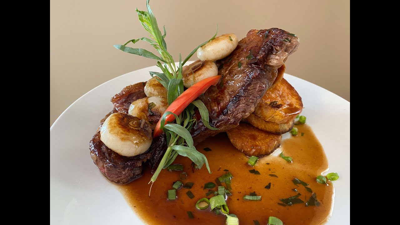 In this video I demonstrate how to sear and braise a steak along with Cipollini onions. I then create a pan sauce for it with tarragon and red wine.