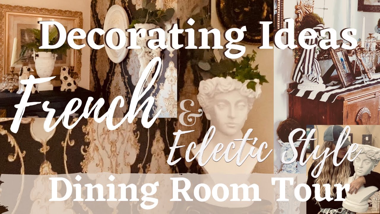 Hi friends 🤍✨ I’m so excited to show you my Eclectic & French Style Dining Room & give you some decorating ideas! From wallpaper, to ornate gold pieces, I’ve transformed my dining room space using vintage pieces!