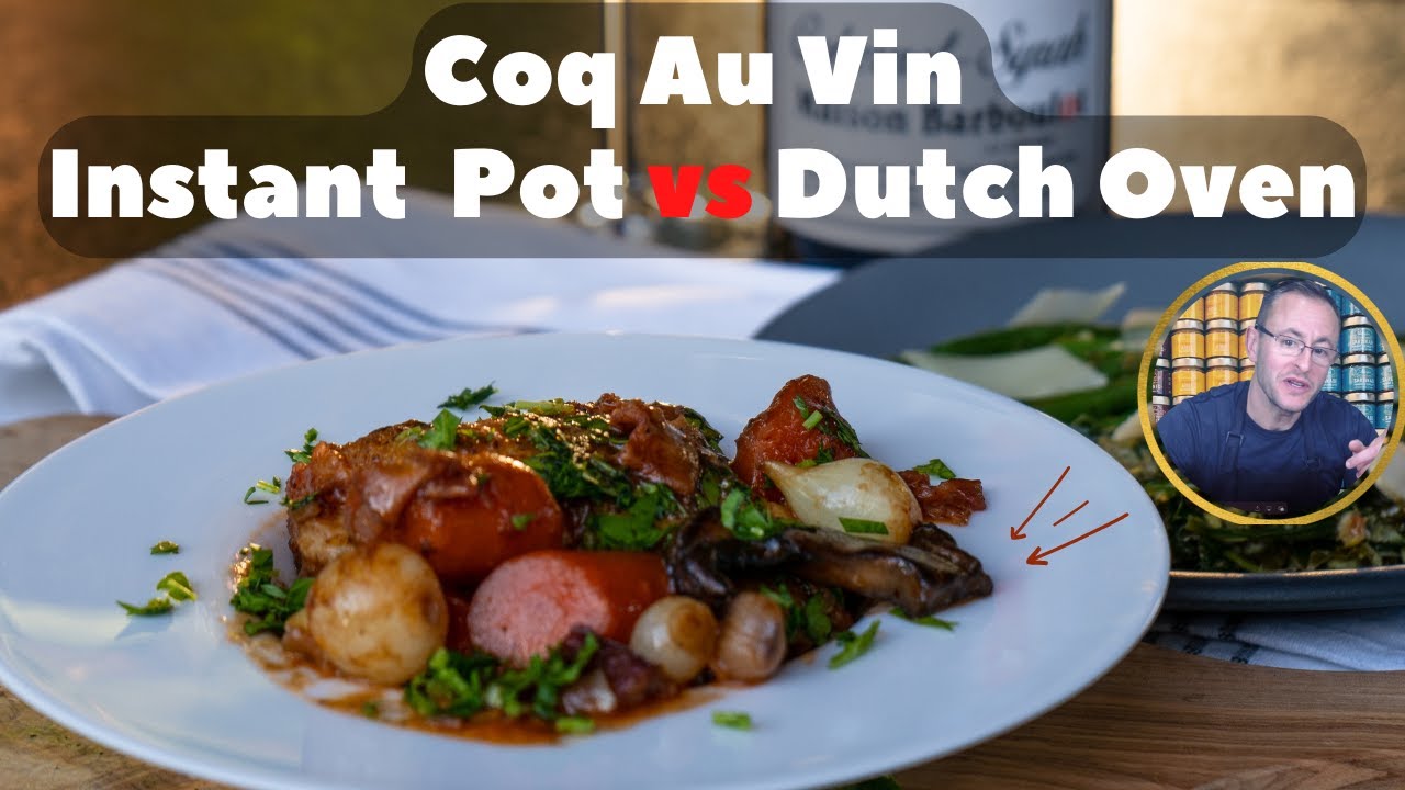 Coq au Vin in pressure cooker vs. dutch oven, which one tastes better? How to make chicken braised in wine, simplified recipe for beginners in Instant Pot and in Dutch Oven.