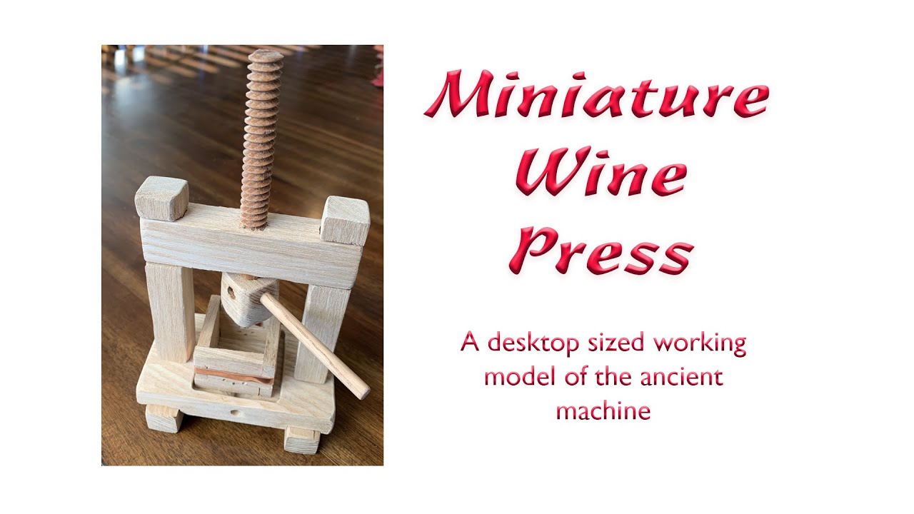 This video is about a Miniature Wine Press. It is a working model, based on centuries old models I have seen in Italy and France. I make these from a wooden beam from a barn in Missouri that was built in 1895. It has a working wooden screw mechanism. You can even load a grape into the basket and press away.