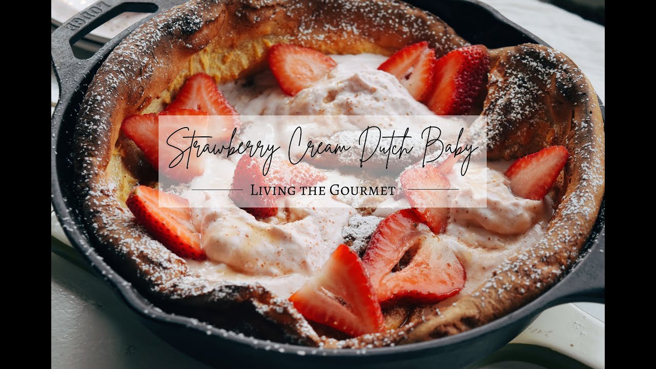 A Dutch Baby may look like a large skillet pancake but its flavors evoke that of French Toast with its buttery crisp exterior. Served with dollops of fresh strawberry cream, warm cinnamon and vanilla, and maple syrup this is the ultimate treat for breakfast, brunch, and dare we say, even dessert.