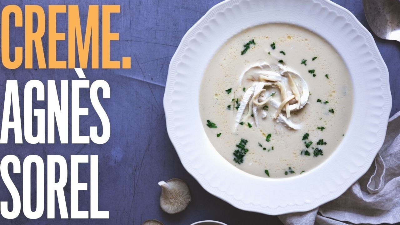 Make the soup that bear the name of one of the most famous French courtisane. chicken and mushroom veloute style cream soup inspired by auguste escoffier called the crème Agnès Sorel.