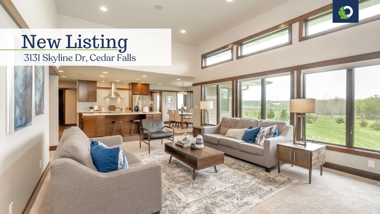 Amazing acreage! This beautiful Cedar Falls ranch home is situated on 2.5 acres of land and features a contemporary prairie style with design cues from the works of Frank Lloyd Wright. As you enter through the French doors you are instantly greeted with a wonderfully designed open concept floor plan. Step in the spacious living room with beautiful mouldings and built-ins and take in the breathtaking views out of the expansive windows overlooking the backyard and prairie behind the property. The living room open to a spacious kitchen with beautiful dark wood cabinetry, quartz counters, tile backsplash, large center island and walk-in pantry. Just off the gourmet kitchen is a large dining area with views of the yard and access to the composite deck as well. Escape to your master suite when you’re ready to relax. You can enjoy the spacious bedroom along with the bathroom with tiled floors, a floating dual bowl vanity, soaking tub, tiled shower plus two closets with ample storage. The main floor also features a conveniently located office with beautiful built-in desk area, a second bedroom, full bathroom with floating cabinetry and a conveniently located laundry room with storage and drop zone with built-ins right off the garage and kitchen. The finished walkout lower level expands your living and entertaining space! Entertain in the large family area featuring a brick accented wood burning fireplace plus bar area that is stubbed in to be a wet bar. The lower level also has 2 generously sized bedroom with large windows, a full bathroom with tile flooring and a 5th non-conforming bedroom or exercise area. Enjoy the warmth of the in floor heat in the lower level and take advantage of the walkout door to private patio area. An oversized 3 stall garage with over 1300 sf of space is attached to the home and also has a second entrance to the lower level. This home features: geo thermal heating and cooling, extra interior insulation, in home audio, wiring for future hookups for a generator and future outbuilding, gorgeous views and much more! Escape and enjoy acreage living with convenient access to Cedar Falls. Take a look today!