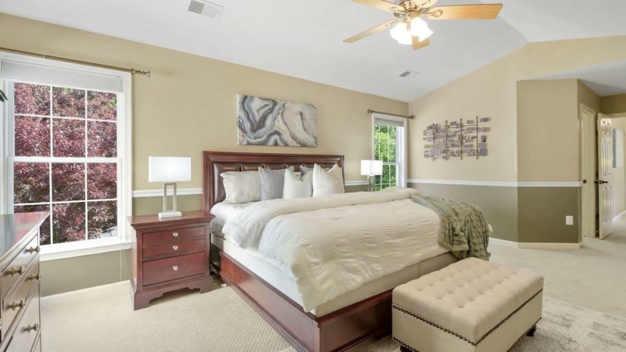 Absolutely a stunner and turnkey! Do not miss this beauty!!! Welcome Home to this stunning, meticulously maintained home located in the “Preserve” of Kingsview Ridge with custom stamped concrete front walkway. This brick front colonial boast four large bedrooms and 3.5 half bath, ALL beautifully updated! Enormous primary bedroom with two walk-in closets and spa-like bathroom with natural light. Gourmet/eat in kitchen with additional zen sitting area (see photos) overlooking the woods through the magnificent windows. Backyard is a true retreat with chefs grill on updated deck with stainless steel wire and natural gas that is piped in, so need for a propane tank. Main level floors are Brazilian Cherry and Private Office, with French doors (also upon entry) has walnut detail. Stainless steel appliances including gas stove with large pantry and additional island space. Roof (2016) GAF Architectural shingles with 50 yr warranty, HVAC (2018) with 5 yr warranty, 10 yr manufacturer, Hot Water Heater (2018) w/5 yr warranty and W/D on upper level and entire house humidifier. Lower level with full bath has custom bar/fridge, Craftmaid liquor cabinets (have hidden wireless locks), sound system, speakers and TV all to convey. Workshop in garage (12×22) with shelving and additional refrigerator to additionally convey. There is nothing left to do but tour this beautiful home in person, which supersedes the pictures. You will be enamored with the view in the back on the stunning, peaceful deck!