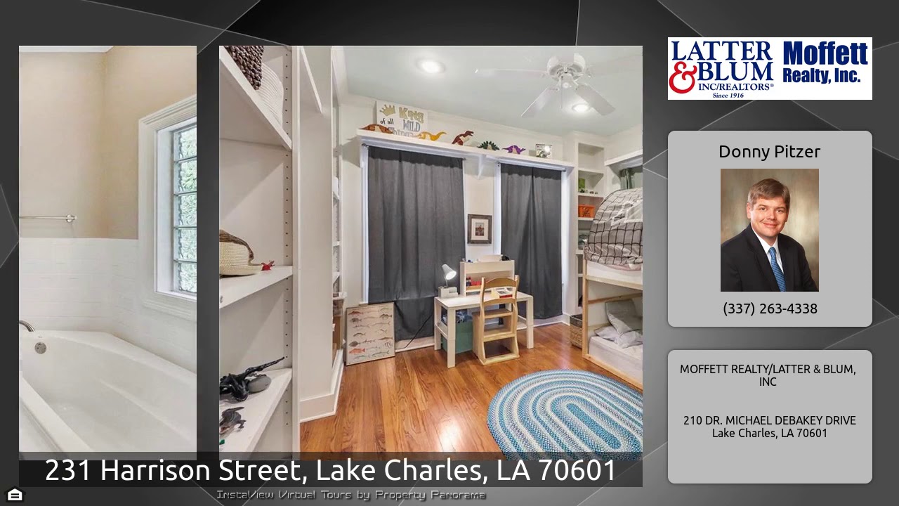 The Virtual Tour for the property at 231 Harrison Street, Lake Charles, LA 70601 listed for $410,000: Other homes for sale by Donny Pitzer of MOFFETT REALTY/LATTER & BLUM, INC: Attractive and charming cottage in Margaret Place Historical District. Living room has a wall of built-ins and windows overlooking the sunroom. Sunroom includes a gas fireplace, arched french paned windows providing natural light, and picturesque views of the bayou. Separate formal dining room leading to the kitchen with a separate bar area overlooking the sunroom. Master suite addition offers a spacious bedroom with …