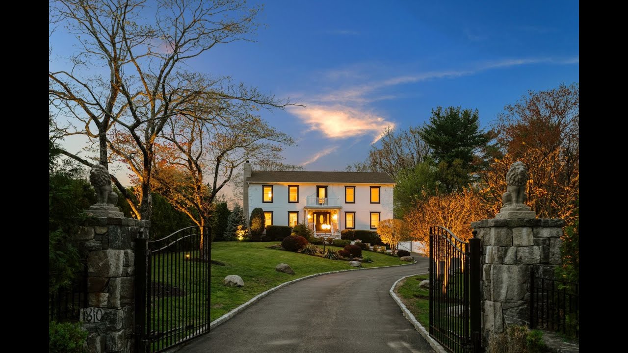 This is the latest video for 1810 FRENCH HILL ROAD YORKTOWN HEIGHTS, NY 10598 for more information click: Just minutes from the Taconic State Parkway and the downtown hamlet area of Yorktown Heights, is this impeccable 4BR stucco colonial situated on a one-of-a-kind, landscaped property with a stone-walled entry and electronic gate. The long level driveway winds its way past a burbling fountain and pond, to the completely fenced and level property, with natural borders for privacy. The spacious entry with black and white tile leads to the formal living room with a fireplace opposite an impressive home office. The eat-in kitchen features stainless appliances and granite countertops, is adjacent to the generous formal dining room, and opens to the sunlit family room. Upstairs, the primary suite features a walk-in closet and full bath with whirlpool tub. Three more roomy bedrooms and a hall bath complete this floor. Outdoors is an entertainer’s paradise offering a large paver veranda complete with fireplace and bar, overlooking the private rear yard. All this plus a 16KW automatic generator!