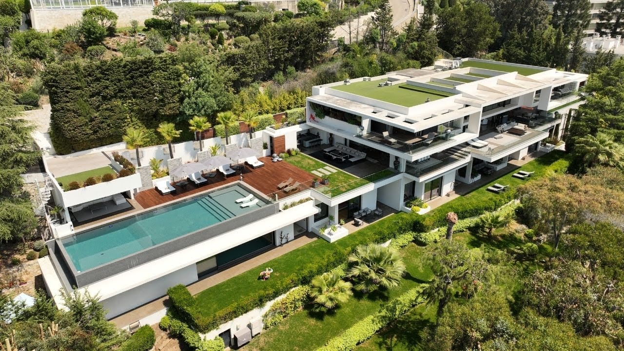 In todays tour we’ve visited this Ultra Modern Rental Mansion nestled into the hillside of Cannes. Not only does the incredible architecture impress, but the epic location of this home which overlooks the island of Sainte Marguerite and the old and new port of Cannes.