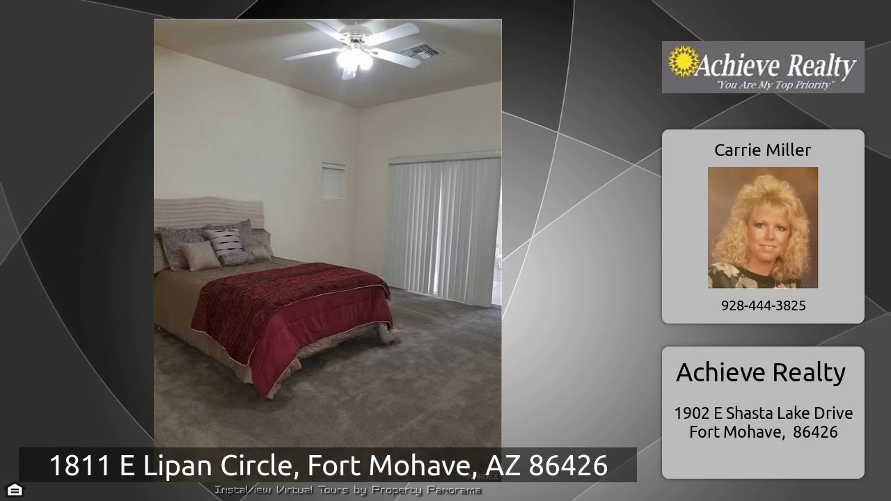 The Virtual Tour for the property at 1811 E Lipan Circle, Fort Mohave, AZ 86426 listed for $229,000: Other homes for sale by Carrie Miller of Achieve Realty: Gated and fully fenced for privacy. Direct access from garage with remote roll-up garage door. Move in ready and low maintenance property with 3 good sized bedrooms and fresh shampooed carpets, 2 full baths with tubs and showers. Wonderful open floor plan kitchen-dining-living room area with high ceilings and crown molding, upgraded high floor boards, center kitchen island, built-in above the range microwave, gas stove/oven, french 3-door …