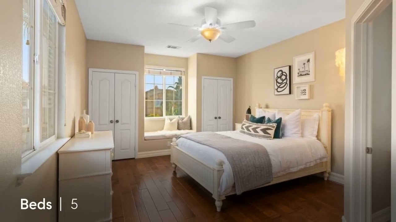 Welcome to your 4S Ranch dream home! Situated on a prime cul-de-sac within the community, this beautiful 5 bedroom home was designed to allow for enjoyment of living the San Diego lifestyle. Features include hardwood floors throughout, solar power system, Ring security, a chef-inspired gourmet kitchen (complete with top of the line appliances), an inviting family room with corner fireplace, fresh paint, and a spacious entry level bedroom with ensuite bathroom. Upstairs are 3 spacious secondary bedrooms as well as the primary bedroom with high, vaulted ceilings and a double sided fireplace with separate sitting area and custom built-in cabinetry. The primary bathroom features a large soaking tub, oversized shower, and dual access master closets. The beautiful French doors in the living room open to a stunning backyard oasis surrounded by lush landscape. For the entertainer at heart, there is a covered patio with built-in heaters and TV cabinetry, dining pavilion, and palapa bar. Taking center stage is the sparkling pool with heated jacuzzi, slide, and water fall feature. Living in the heart of 4S surrounds you with the amenities that create this highly desired lifestyle; take a walk over to the community garden, take an afternoon to explore some of the vast 22 acres of parks, or stroll along the tree lined street that leads to the 4S Commons Town Center where you can have dinner under the stars at one of the local restaurants.