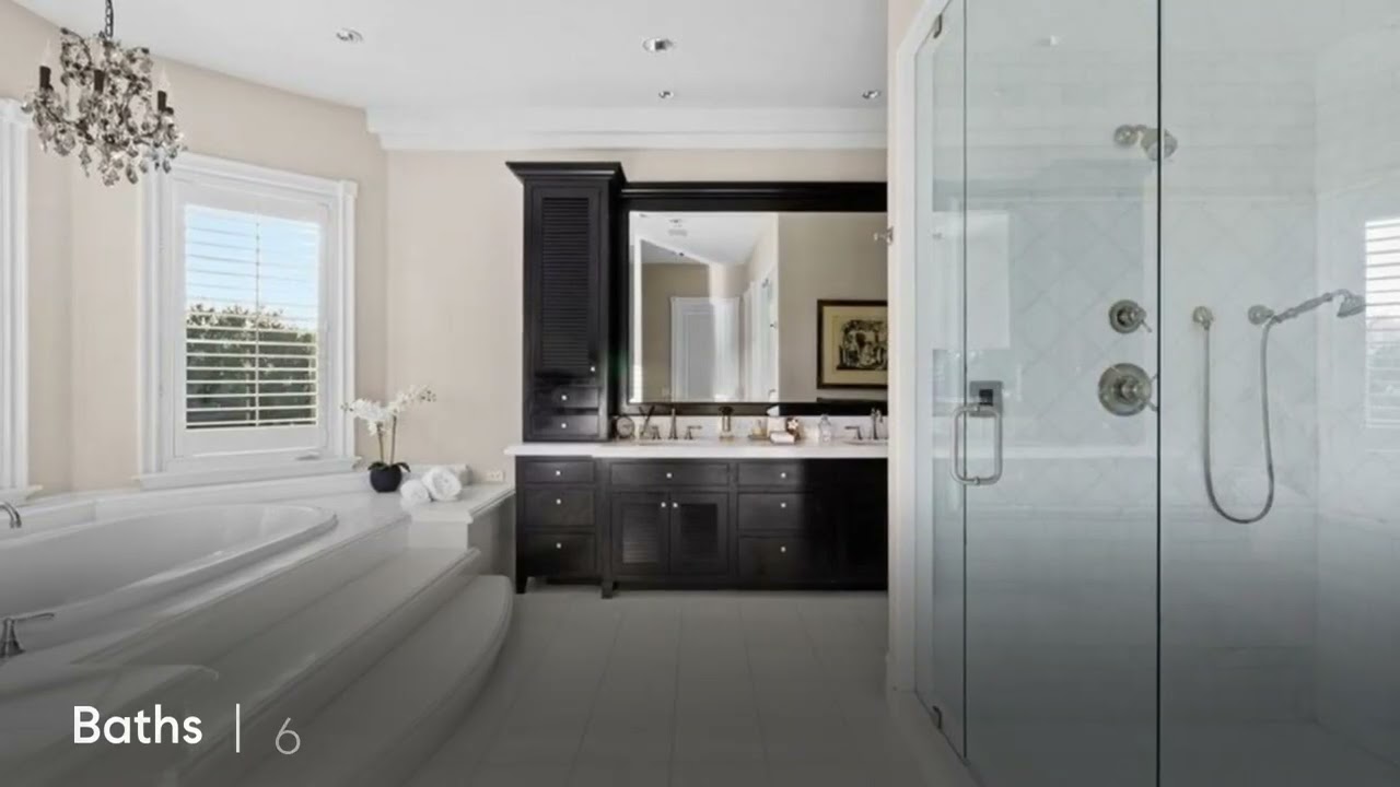 Sited behind the exclusive guard gates of Bel Air Crest, this home is one of 200 luxury estates in one of the most sought-after communities in Los Angeles. Over 7,000 SF of a custom home, the craftsmanship and attention to detail communicate from the stained glass skylight to the hand-carved antique wooden doors. A grand two-story entryway is framed with dual staircases, inlaid art walls, coffered ceilings, and a chandelier centerpiece leading to the spacious rooms of a thoughtfully open floor plan. A gourmet kitchen with wooden floors, the finest appliances, a chef’s island, and breakfast nook, a formal dining, formal living, oversized great room with a fireplace, wet bar, and french doors opening to the wrap-around back deck, a powder and en suite bedroom complete the main level. Upstairs offers three additional bedrooms w/office option, and a royal primary bedroom hosts a fireplace to separate a lounge sitting area, dual sinks and dual walk-in closets, a vanity, soaking tub, and standing shower, all overlooking the backyard oasis. Luxurious amenities welcome you on the lower level with a brick, temperature-controlled wine tasting room, two gym areas, a music studio, a theater with tiered seating for 15+, an elevator to all three floors, and an ensuite in-law bedroom with a separate entrance from the pool deck. The backyard grounds offer lush serenity for intimate relaxation and a pool, spa, waterfall with fire pits, and BBQ sitting areas perfect for entertaining. This rare opportunity for sale in the coveted Bel Air Crest community gives private neighborhood living with a sophisticated and quality build.