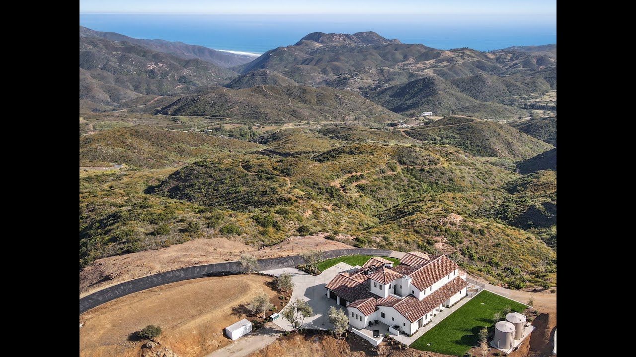 A Santa Barbara Spanish contemporary retreat sits on over 21 acres, tucked away in Malibu wine country! Total serenity and privacy abound with breathtaking, unobstructed 360-degree ocean, coastline, island, and mountain views. The property is accessed via a gated, private driveway through a vineyard, to a completely custom home meticulously built in 2018 (final completion in 2021), with non-combustible materials for high efficiency and sustainability. Enter through a picturesque corridor to a peaceful inner courtyard, complete with a fireplace, fountain, and indoor/outdoor lounge with an exterior restroom. Enter the open concept living area with White Oak floors throughout and french doors that usher in natural light and allow for optimal indoor-outdoor living. The living room features a fireplace and flows to the kitchen with a center island, marble countertops, and high-end Thermador appliances. A formal dining area leads out to a wraparound entertaining terrace that enjoys awe-inspiring sunrise, sunset and coastal views. The entry-level has an office, two en-suite guest bedrooms, laundry room, workout room, butler pantry and an additional exterior patio with views of the winter snow capped Topatopa Mountains, Hidden Valley, Lake Sherwood, and more. Upstairs, there is an en-suite bedroom and a spacious primary suite with a covered terrace, loft media room, spacious walk-in closet, and spa-like master bathroom with an extra-large freestanding soaking tub and dual vanities. The exterior boasts two large grassy lawns, an oversized 3-car garage with a lift that can accommodate 4 vehicles, and plentiful additional parking. Rarely is a home of this magnitude fully “off-grid.” The home is sustained by on-site water, solar and Tesla Powerwall systems providing you with no water or energy bills. The property has approvals for additional agricultural expansion, which is exceedingly rare in the Santa Monica Mountains. There are two additional flat pads with grading complete and infrastructure in place, with approved plans for two agricultural buildings. Adjacent to the famous Backbone Trail for beautiful hiking and riding, and a stone’s throw to Westlake Village, Malibu, sandy beaches and more. Come see this rare off-the-grid estate in Malibu wine country!