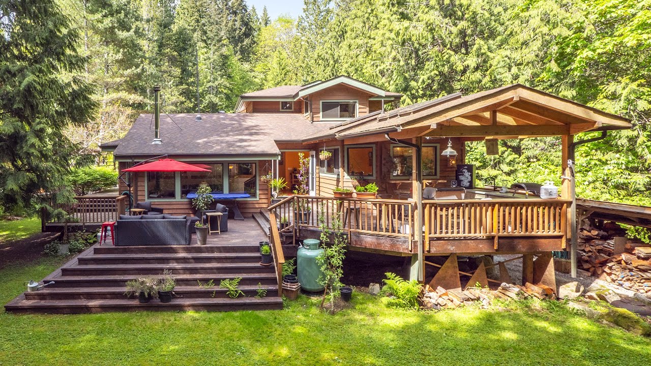 Blended seamlessly among the trees, this 1.12 acre property in Roberts Creek, BC offers two separate homes in a magical setting. This home has been customized by the contractor/owner to a very high standard.