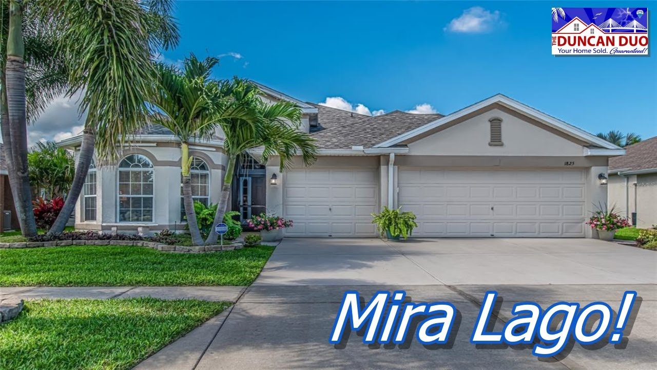 Enjoy Florida living at its best in this stunning 3 bedroom/2 bathroom/3 car garage + DEN home nestled in one of Ruskin’s most desirable resort style communities, Mira Lago West! Warm and welcoming, this exquisitely maintained single story abode boasts a BRAND-NEW ROOF w/ transferable warranty, NEW AC unit w/ uv protection in system and ductwork, plenty of living space and loads of upgrades. This home showcases GREAT CURB APPEAL, with stunning landscaping and French drain. Inside you have a formal living room, and dining room. The spacious gourmet kitchen offers a large island with breakfast bar, granite countertops, crisp white cabinetry, stainless steel appliances, and a sunny breakfast nook. The kitchen overlooks the expansive combination great room/breakfast area which showcases beautiful views of the backyard. The glass sliders give easy access to the expansive screened in lanai and allow for an abundance of light to flow throughout. Pride in ownership is apparent in this meticulously well-maintained home! Truly a wonderful place to entertain family and friends! You will find the master bedroom is spacious with large walk-in closet, and features a luxurious en-suite bath with a garden tub and separate walk-in shower. In this split bedroom floor plan, the secondary bedrooms are also bright, and offer ample space. Other notable features include security system, FRESH INTERIOR PAINT, kitchen water system with reverse osmosis, and the enormous, screened lanai has new outdoor ceiling fans and is prewired for a hot tub. Mira Lago West offers its homeowners a variety of amenities including: a resort style community pool, walking trails, tennis, and more! Conveniently located close to fabulous shopping, dining, and world-famous beaches! Don’t miss your chance to live in this gorgeous home and be part of a wonderful community!
