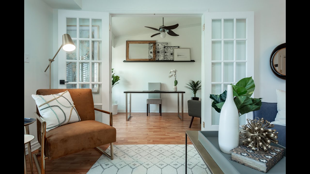 Rarely Offered, Spacious Princeton Model 1+1 W/ Vaulted Ceilings On Top Flr, French Doors Walk Out To West Facing Private Balcony W/ Bbq. Buckets Of Natural Light, Updated Kitchen W/ S/S Appls., Pendulum Lighting, Breakfast Bar, Ceiling Fans. Den W/ Bay Window And Built In Bench Seating, Large Enough For Office, Dining Or 2nd Bd. Amazing Location, Owner Underground Parking, Locker, Ample Common Pkg. Gym, Party/Business Room, Visitor Parking