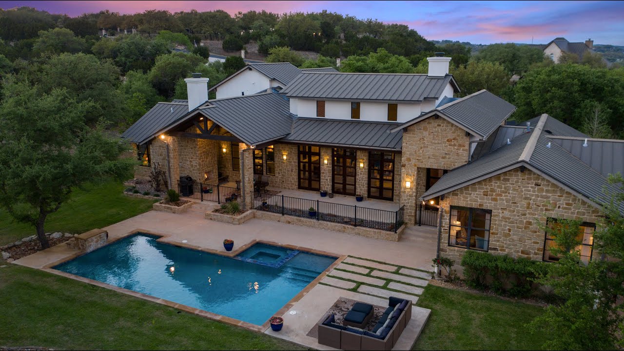 Live a Southern Living dream life in this architectural gem perfectly situated on over 3 acres of hill country with privacy, views, gorgeous oaks, wet weather creek, sparkling pool and spa! This gated, peaceful estate on a quiet cul-de-sac is an entertainer’s dream with over 1,000 square feet of covered outdoor living spaces to enjoy the Outdoor Kitchen, fireplace, pool and spa. Open style floor plan with elegant entry foyer leading to the expansive Great Room with stone fireplace and soaring ceilings. Walls of French doors lead both to the front covered patio and the back patio overlooking the pool. Gourmet Kitchen with custom cabinetry, designer accent color center island, Thermador and Bosch appliances and gleaming granite countertops. Spacious Owner’s suite is on the main level and overlooks the peaceful hill country and sparkling pool. Spa like bathroom with double vanities and large walk in closet. Executive office for privacy while working at home. Two main level secondary bedrooms are large and each one has it’s own walk in closet and full bathroom. Upstairs you will find a second living room and a guest bedroom suite with full bathroom. The garage is oversized at 750 sqft and very deep, with an additional area beyond the 2 car that is currently used as a home gym. Energy efficient home with spray foam insulation, metal roof and a 13,440 watt solar system that can be expanded to 3 times the size. Reserve / backup inverter is also installed. At the current size, power bills range from $0 in winter to $100 in August. On-site well supplies the home’s water, with a 2,000 gallon storage tank for extra water storage. The home was built for rain water collection with all gutters piped together which drain the water from the roof to a central location. Over 1.25 acres of the 3 acre property is fully irrigated (20+ zones), with a main expansion supply line running from the well house back to the solar panel area. So much privacy to enjoy and lots of room to add a sport court or guest house since the lot has plenty of flat buildable area! Ideally located in Travis Settlement, with two wonderful, gated neighborhood parks – the Creekside Park with a gorgeous swimming hole and the Lakeside Park with a residents only boat ramp. Lake Travis ISD with highly sought after schools and sports programs and LOW 1.88% tax rate. Close to Bee Caves and the Hill Country Galleria with shopping, dining, Whole Foods and more!