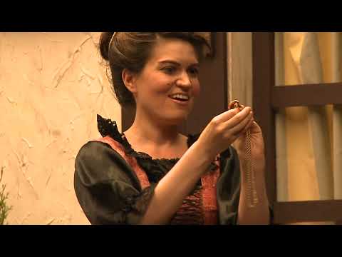 In this scene, Martine, Sganarelle’s wife comes down to enquire what her husband is doing with Célie, the young neighbour she saw holding in his arms. She’s complaining on how husbands soon are looking around for younger lovers. On her way home, she finds the locket Célie dropped when she fainted, inside his Célie young lover’s picture, he looks ravishing and handsome. Sgnanarelle coming back home sees his wife admiring a young man in a locket… What’s going on here?