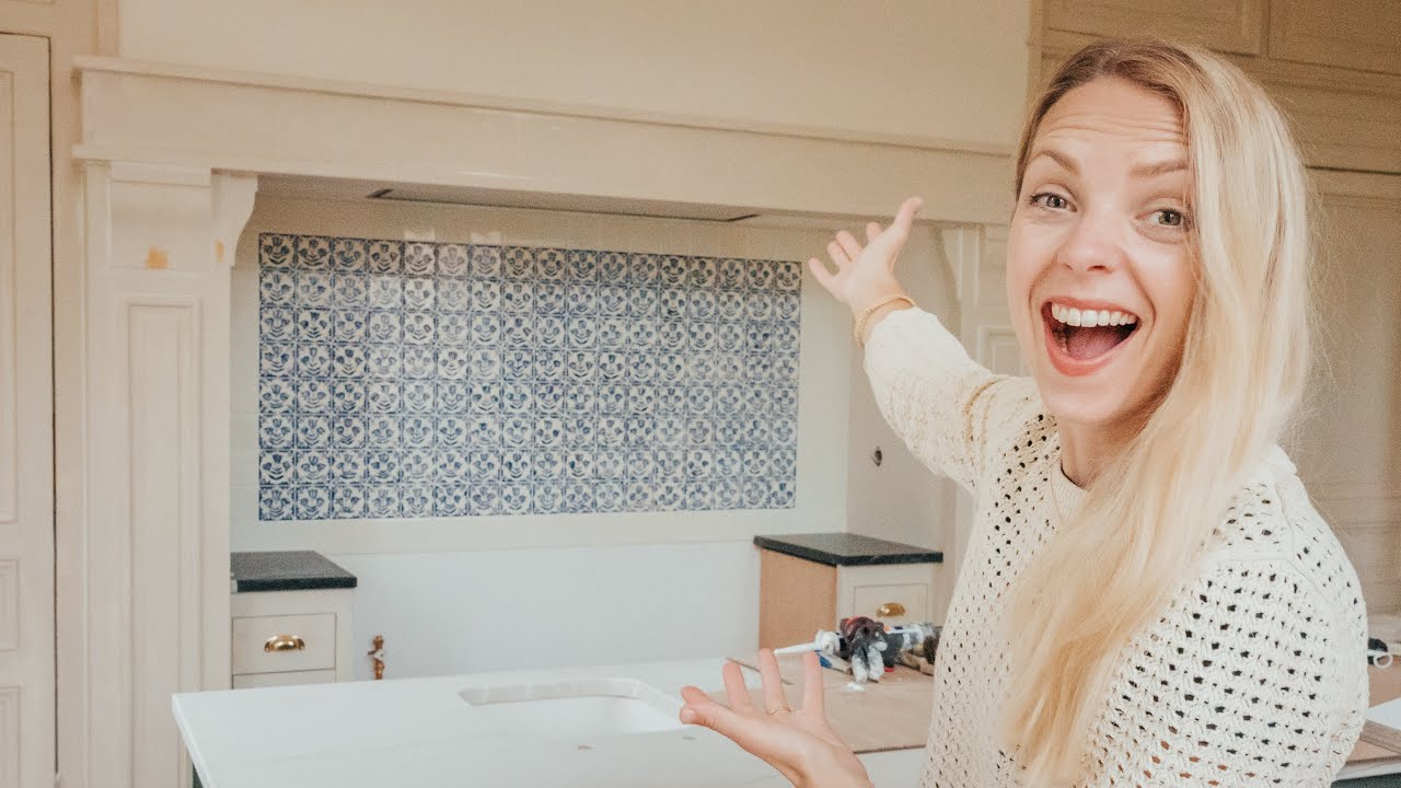 I’m so proud of Anna, her hand made tiles are stunning! The new bespoke kitchen is almost finished. Installing handles, plug sockets and Anna’s hand made tiles means a big transformation.