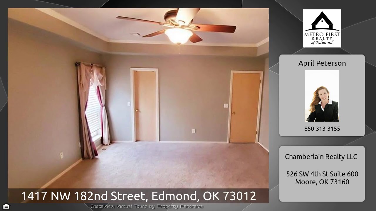 The Virtual Tour for the property at 1417 NW 182nd Street, Edmond, OK 73012 listed for $195,000: Other homes for sale by April Peterson of Chamberlain Realty LLC: This split floor-plan 3 bedroom 2 bath house features large bedrooms and an office/den with French doors; could be used as 4th bedroom. The Office/den holds a fireplace with built-in shelving.The formal dining space flows to kitchen which leads into the living area. The kitchen features a pantry and holds a new range and new refrigerator. The mater bedroom features a walk-on closet. While the master suite holds duel vanities a large …