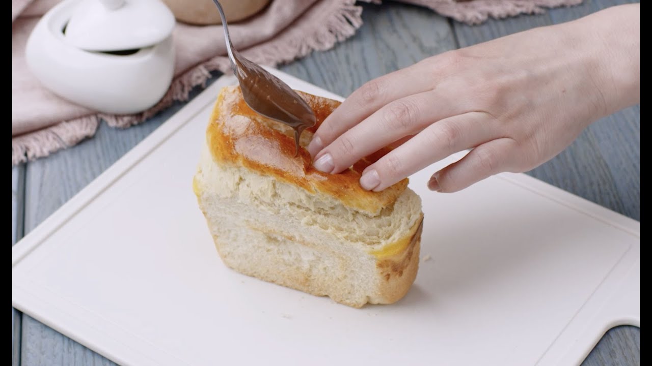 Cut bread into rough slices, make a hole in them, and filled with hazelnut cream.