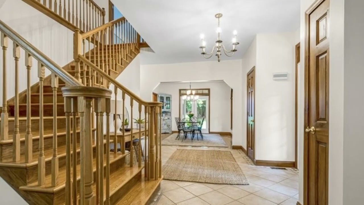 Welcome to your private retreat! Gorgeous and inviting Colonial w/beautiful wrap around porch is located on private and wooded 5.01 Acres! As you enter this beautiful home, you are welcomed w/a large foyer, to the right is the dining room and to the left is the living room. The open kitchen has granite countertops center island and plenty of cabinet space with eat in area and breakfast bar. The dining room is spacious w/French doors that open to the covered porch. The living room has a beautiful fireplace and French doors that lead to the backyard. Upstairs, you will find 4 Bedrooms. To enter the master bedroom you will go through French doors, it is a very large bedroom with large walk-in closet. The master bathroom is very nice and features a “steam shower” and jetted bathtub. The bedrooms are all good size and the full bathroom off the hallways has been fully remodeled with tiled shower. Finished basement adds 720 sq ft with a full bathroom. Fenced in pool area has a fantastic pool …