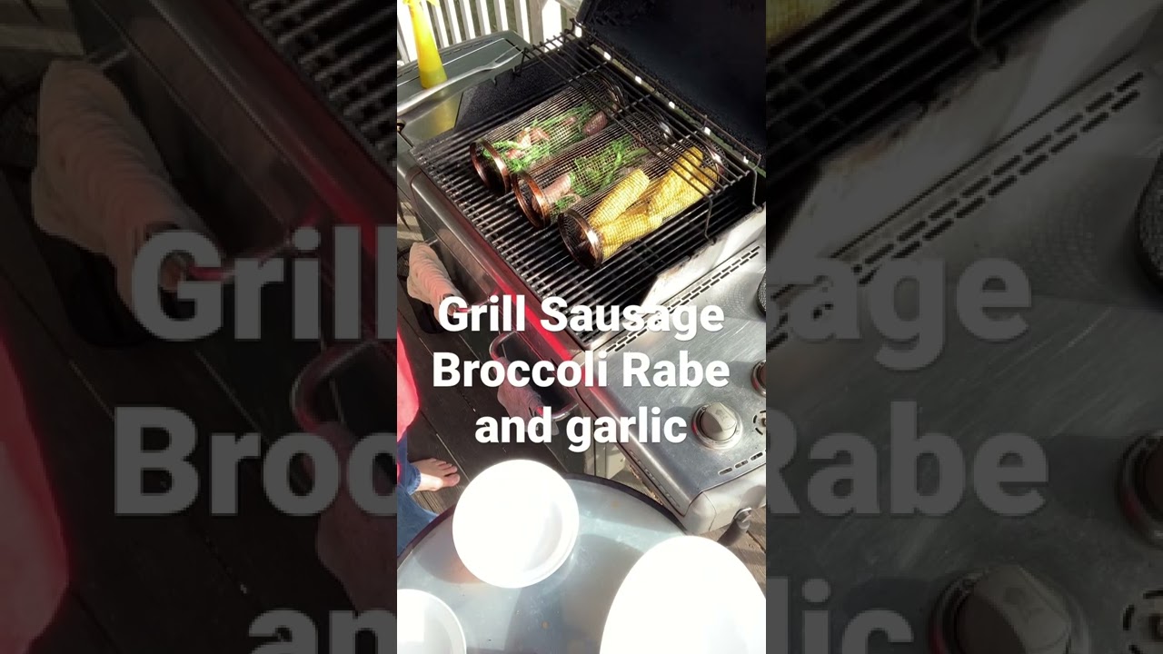 Grill Sausage broccoli rabe and garlic. The best tasting Broccoli Rabe you will ever have. So Easy all your grilling “Done in One”. You will become a gourmet griller in minutes. Take the Grillie Challenge and Grill Bacon and French Fries on a gas or charcoal grill.