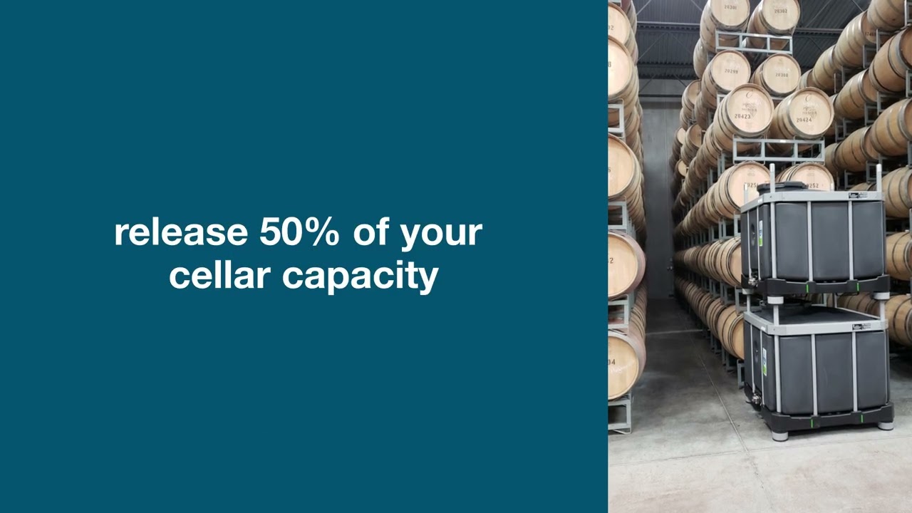 Filling and emptying fewer barrels, no wet barrel storage, saves water, stackable to 4 high for 1kL (or 20 traditional barrels).