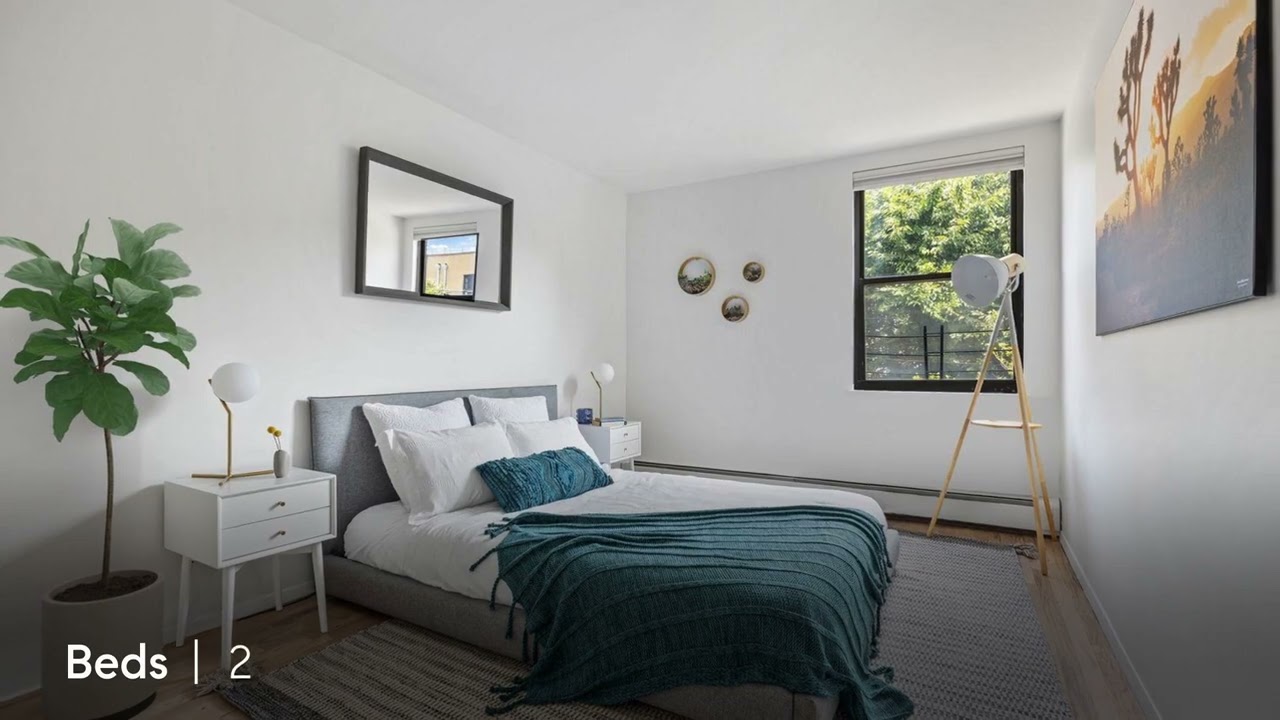 Enjoy an open concept layout in the living/dining rooms, with ample space for a separate dining area with table and chairs, perfect for entertaining. Oversized windows grant both northern and southern exposures, allowing natural sunlight to drench the entire apartment from dawn to dusk. Newly finished hardwood floors, a charming built-in work space, and custom closets throughout make this the perfect home.