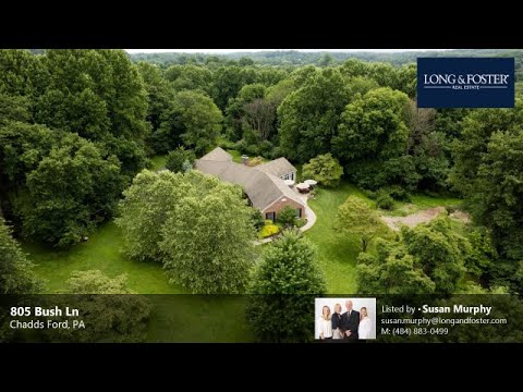 Welcome to 805 Bush Lane in the prestigious Chadds Ford community of Greenwood Hills. This expansive and elegant ranch home is the true definition of a private retreat, tucked amidst 3 acres of stunning natural scenery in the heart of Chadds Ford. Highlights of this home include, but are certainly not limited to, 2 primary suites, a gourmet kitchen, an open living space with soaring ceilings, dramatic & oversized windows, a beautifully finished walk-out basement, rich natural materials, unique custom details, and an extraordinary setting to keep you grounded and to serve as the perfect backdrop for making memories with family and friends. A private driveway and a manicured yet natural landscape and hardscape lead to this home. Step inside to the sizeable entryway and beautiful hardwood floors that extend throughout the majority of this 3,750 square foot home. Flow into the open space joining the kitchen, dining room, and great room; the ideal configuration for savoring your everyday routine and the heart and soul of this home. This impressive space features soaring ceilings with gorgeous knotty pine ceiling towering over the dining room and gourmet kitchen with 42-inch cabinetry with soft-close and pull-out drawers, undermount lighting and glass pane accents, stainless steel appliances, granite countertops, oversized center island with counter seating, and convenient desk area. Just behind the kitchen is the open dining room with cozy woodstove and exposed brick; perfect for those chilly months. Relax and unwind in the stunning great room with the same beautiful floors and knotty pine ceiling in addition to three walls of oversized windows providing a 24/7 view of your natural surroundings. On either end of the main living space are two wings, the first is the owner’s wing with the spacious and soothing master suite featuring a wood-burning fireplace and sitting area, custom walk-in closet, and gorgeous en-suite bath with radiant heating. On the other side of the home is the second wing hosting an additional two bedrooms and two baths, including the second primary suite with lovely en-suite bath with granite vanity and glass shower, floor to ceiling built-ins, and French doors leading outside to the patio. Completing the main level is a conveniently located half bath & laundry room. The lower, walk-out level of this home offers endless possibilities with several separate spaces to host an additional family room, rec room, gym, office, or whatever your needs require. Outside, you will enjoy every second on the private patio while you relax, dine, entertain year-round. Valuable upgrades and bonus features include: custom closets in the two primary bedrooms, 3-zone geothermal heating and air conditioning, 2 hot water heaters, oversized garage and workshop area, mostly newer windows (2022), and 99% of this home handicapped accessible. Located on the end of a cul-de-sac and backing to an additional 10 acres of green space, this home is truly surrounded by nature. Living here means that you will regularly experience everything that Chadds Ford has to offer including renowned restaurants, shopping, nightlife, wineries, cultural attractions, and festivals synonymous with the beautiful Brandywine Valley. Close to surrounding hotspots like Kennett Square, West Chester, and Greenville, in addition to Rt 1 for commuting. This home was lovingly built and passed on through family and it awaits its new storyline. Be sure to View the Virtual Tour, Floorplans, and Schedule a Showing Today!