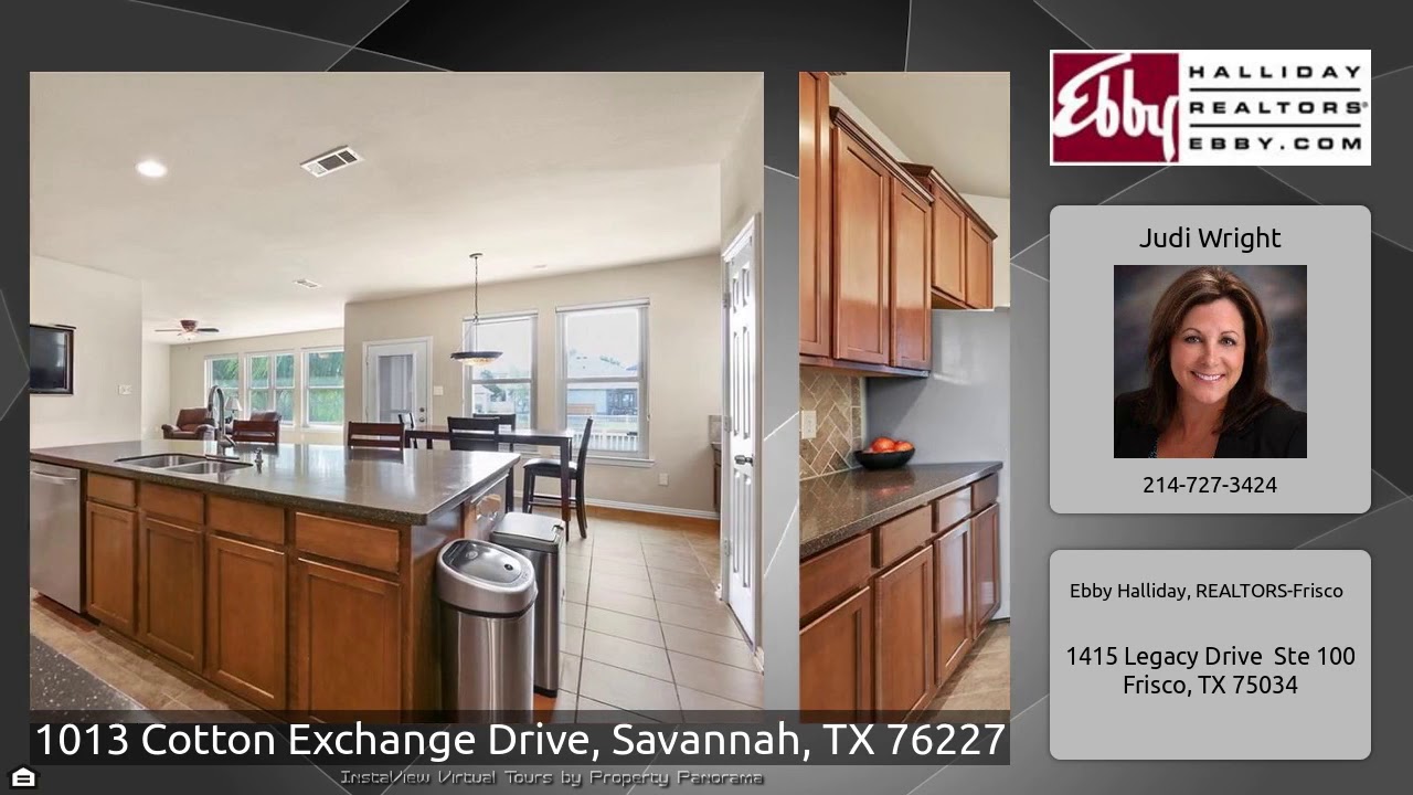 The Virtual Tour for the property at 1013 Cotton Exchange Drive, Savannah, TX 76227 listed for $369,900: Other homes for sale by Judi Wright of Ebby Halliday, REALTORS-Frisco: Want water views? This gorgeous home backs to a community canal! The flexible plan offers 4 bedrooms, 2 living areas, 2 home offices-flex space, 3 bathrooms, 2 half-baths. Wonderful tiled kitchen opens to casual dining and family room! Features: French Doors, Hardwood Floors, SS Appliances, Corian type counters, Butlers Pantry, Gas FRPLC, Nest thermostat, Ceiling Fans, firepit. Updates: Solar panels (2017 owned), …