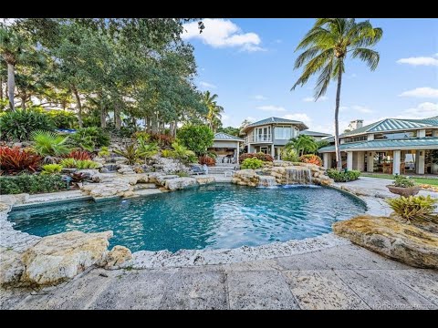 Gated community of Plantation at Sewallâ s Point. Elegant, waterfront family compound encompasses approximately four scenic acres. Exterior features include tranquil waterfalls, coy ponds, two pools, two docks (lifts), guest and staff cottages. Interior includes living room with coral stone fireplace, tall glass panels and high ceilings providing expansive views of the St. Lucie River. A formal dining room overlooks a manicured landscape, pool, fire pit & waterfront. The 10,000+ sq. ft. main house has 5 bedrooms with ensuite baths. Expansive gourmet kitchen with french limestone floors, granite counter tops and state of the art appliances accommodates large social occasions or intimate family gatherings. Four car air-conditioned garage, 3 car port area, laundry room, staff quarters and air-conditioned kennel. Additional amenities include a private office and media room. Two bed/bath guest house with private pool is adjacent to a direct waterfront 1,100 square foot, one bedroom cottage.