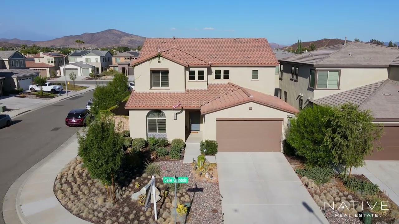 Featuring 36434 Calle Grandola, a pristine luxury residence in Temecula Valley. The sellers spared no expense, selecting top of the line finishes, options and premium flooring throughout. Featuring a modern floor plan, this two story home lives well with 3 bedrooms and a loft up, an optional 4th bedroom / office down, 2.5 baths + 2 car garage w/ spacious storage bay. The gourmet kitchen features white upgraded shaker cabinets, a separate chef’s kitchen, large center island, farmer basin sink, quartz kitchen countertops, GE® Cafe Series stainless steel appliances, a luxury French oven and a microwave with convection. The elegant primary suite features an en-suite bath with soaking tub, elevated dual sinks, step in shower, private commode + large walk-in closets. The energy efficient home features solar power, water purification and softening systems, tankless water heater, dual pane windows, day/night custom retractable shades and plantation shutters, crown moulding throughout, a spacious great room, easy access wine cellar, generous prep kitchen w/ sink, room for a secondary fridge + generous walk-in pantry. Step out into the private yard via stacking doors that encourage indoor/outdoor living. Beautifully landscaped with pavers, ambient fence + yard lighting, succulents and a BBQ area. Relax in the spa and rest beneath the covered California patio room with beautiful views of the neighboring mountains. Nestled in a premium location in the French Valley which boasts a small-town lifestyle just minutes away from Old Town Temecula with its historic buildings and antique shops, the Temecula wineries, entertainment and restaurants nearby, abundant family recreation options, hiking and biking trails, and shopping centers nearby. It has easy access to major employment centers via the 215, 15 freeways and Highway 79 and is located within the highly ranked Temecula Valley School District; complete with an elementary school and parks located just one-half mile away. Featuring Pardee LivingSmart® home technology; designed with the Pardee now Tripointe Homes five core components: EnergySmart?, EarthSmart?, HealthSmart?, WaterSmart? and the newest?HomeSmart? bringing smart technology that helps you stay comfortable, in control, connected and saving money. These features combined with the beauty of the home and area make this Avena home an excellent investment providing premium value and architecture that is fresh yet timeless and the perfect place, to put down roots and thrive.